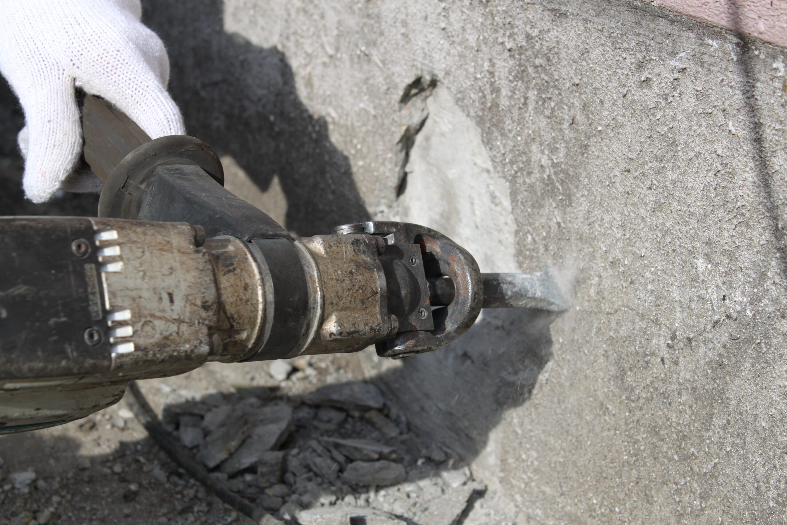 コンクリートを「砕く」「削る」「壊す」といった作業全般をはつり工事といいます。コンクリート造建築物の建設現場・土木現場で必ず行なわれる工事です。